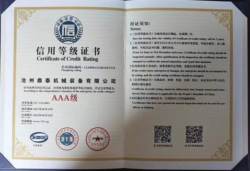 荣誉资质-沧州鼎泰机械装备有限公司