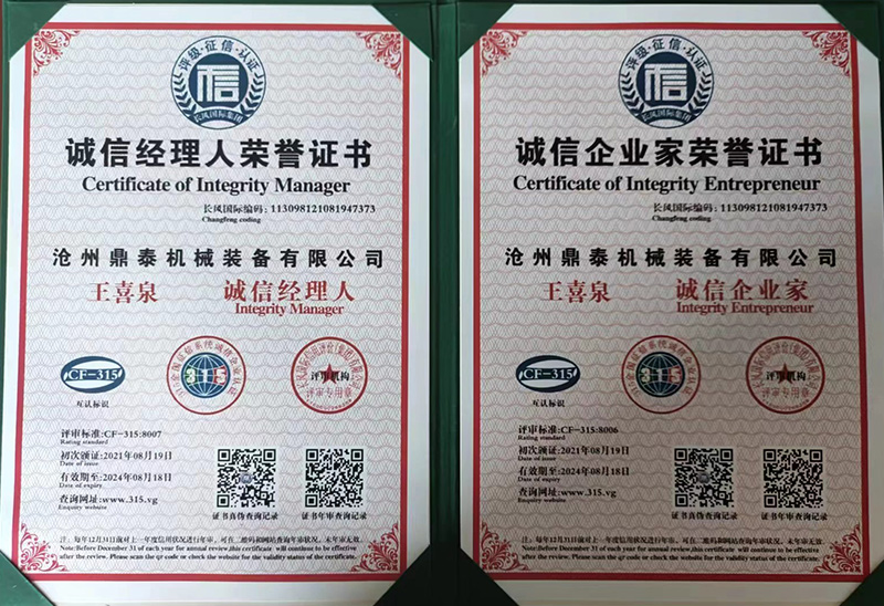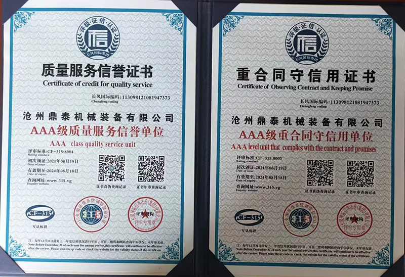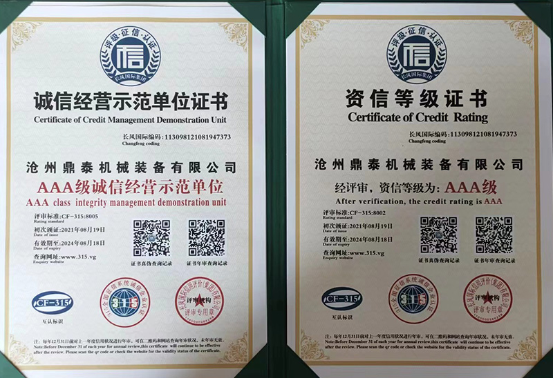 荣誉资质-沧州鼎泰机械装备有限公司